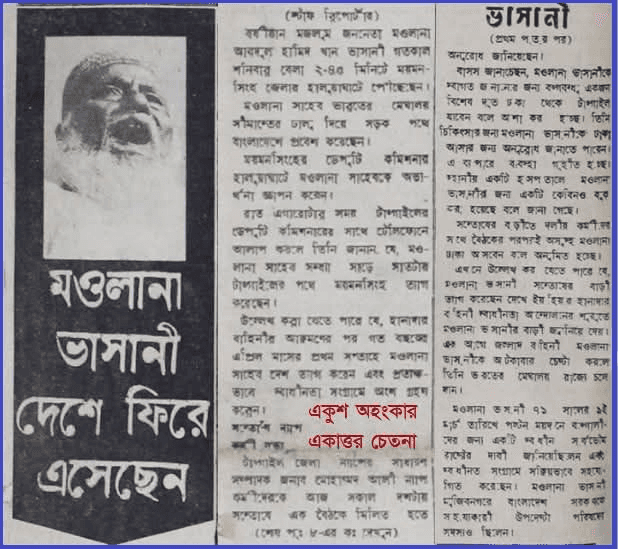 আরো পড়ুন: মুক্তিযুদ্ধকালীন সময়ে মওলানা ভাসানী কি ভারতে বন্দি ছিলেন?